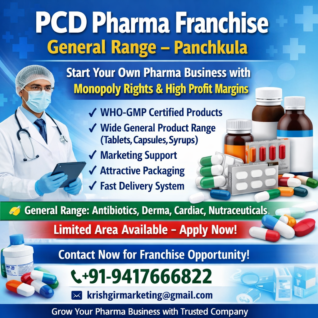 Pharma franchise for general range in Panchkula – At Krishgir Pharmaceuticals Private Limited, we aim to reach the supreme level of availability, and practicability through our work. We offer PCD pharma franchise for tablets in Panchkula. We are looking forward to our strong presence in the Pharma world by introducing our PCD option to all the eligible professionals.